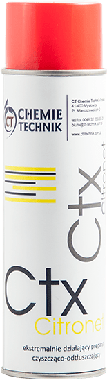 CTx® Citronet to silnie działającyi głęboko wnikający preparat czyszcząco-odtłuszczający do wszelkich prac tego typu w zakresie przemysłowym. Preparat posiada lekki, cytrusowy zapach.